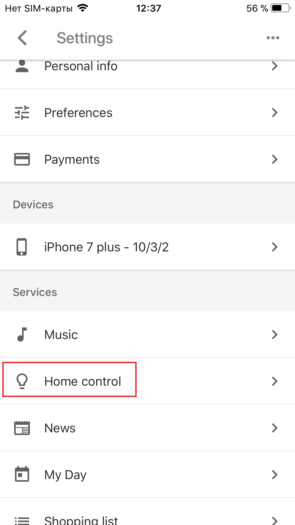 2. On the "Home control" tab