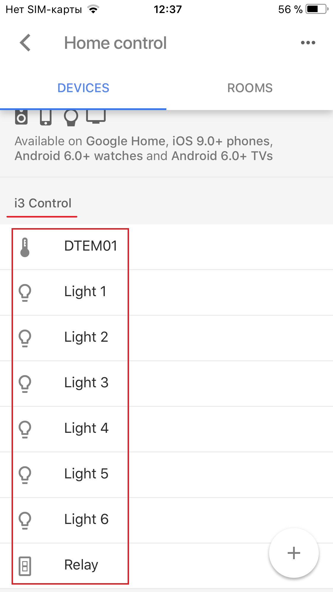 3. In this window you can see that the application is connected to "i3 Control" and you can also see the list of devices managed in the project with Google Home
