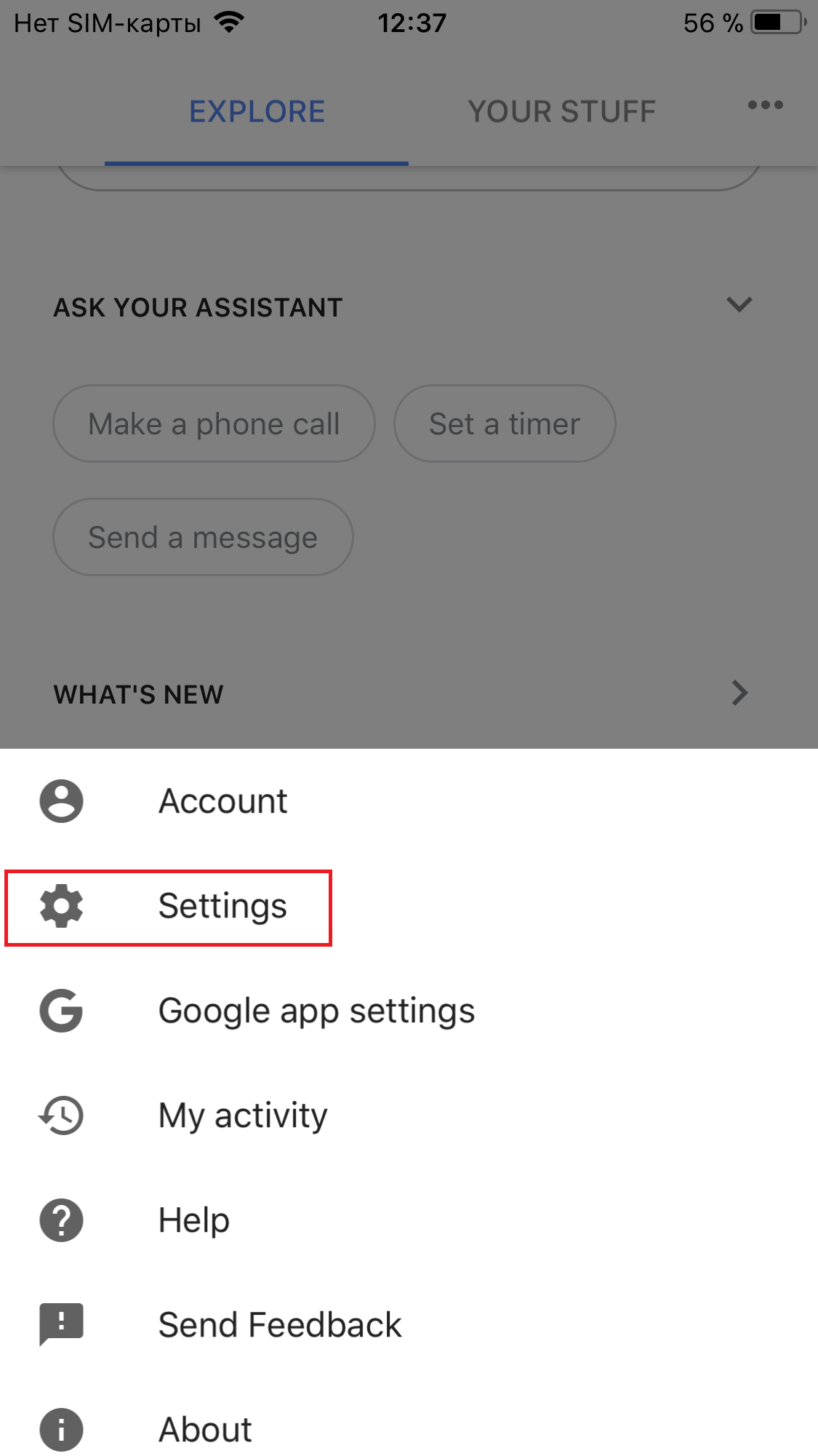 1. In the Assistant application, go to the settings menu