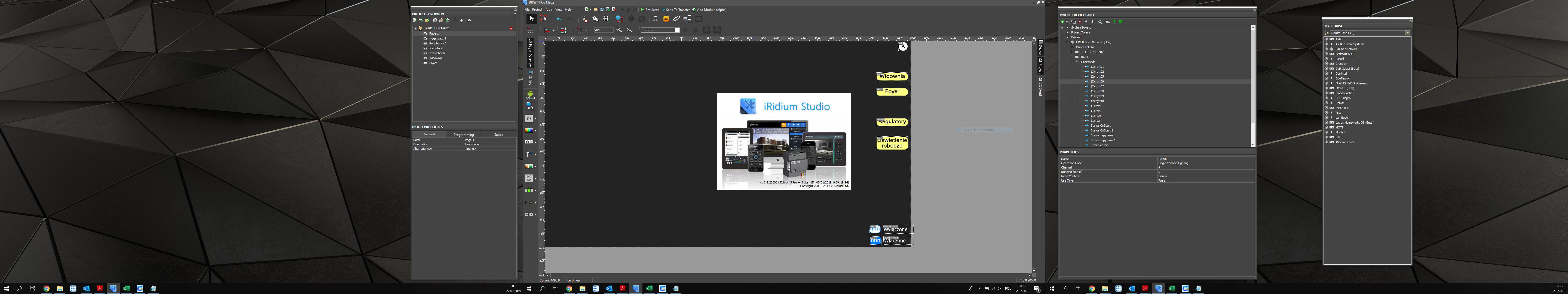 In office I use external screen for my laptop. When use iRidium studio have on main screen, and pages overview, project device panel and device base on second monitor.