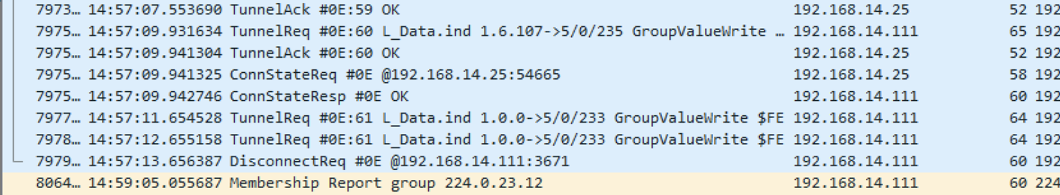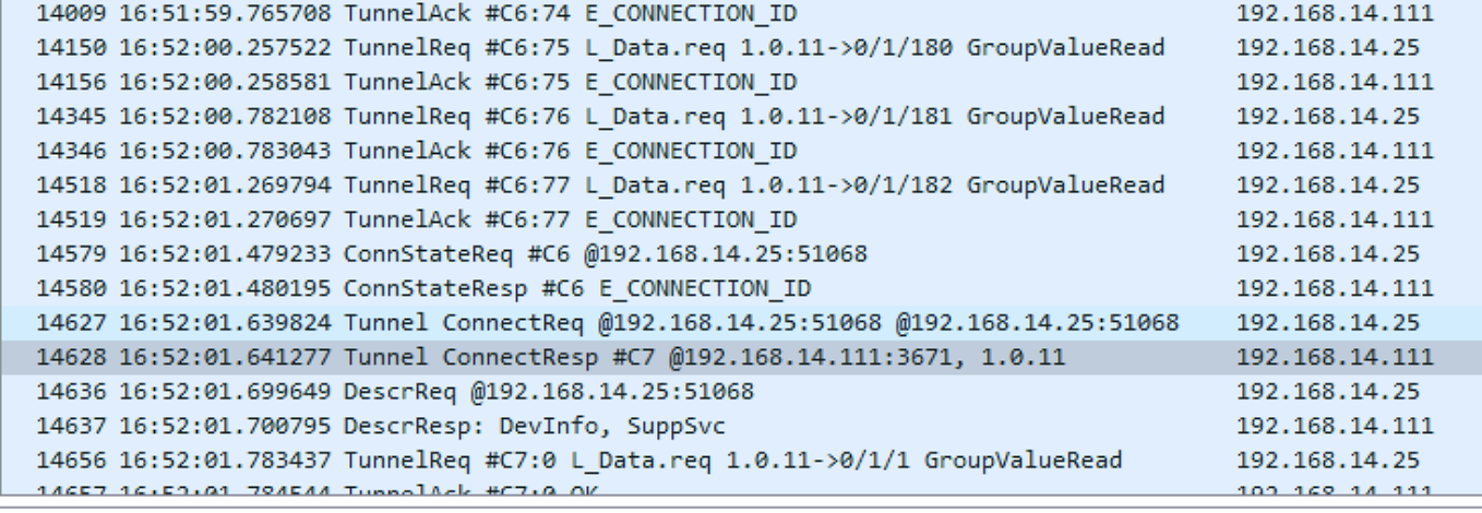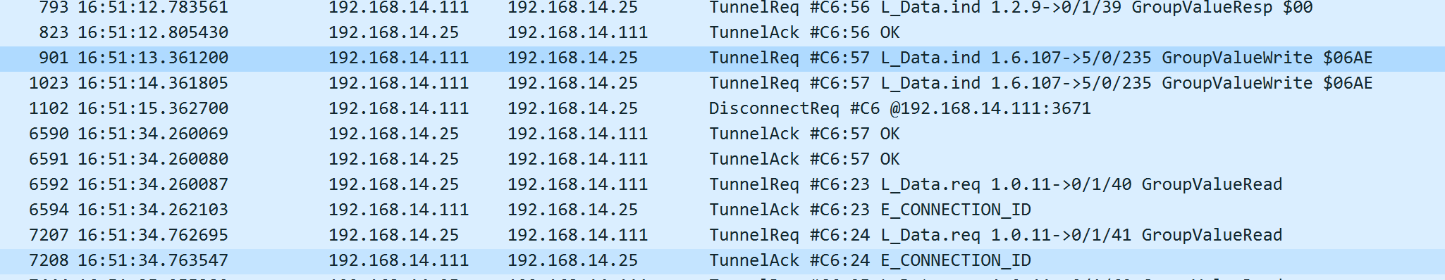 Line 901 - KNX bus does a write, which should be acknowledged by tunnel connection