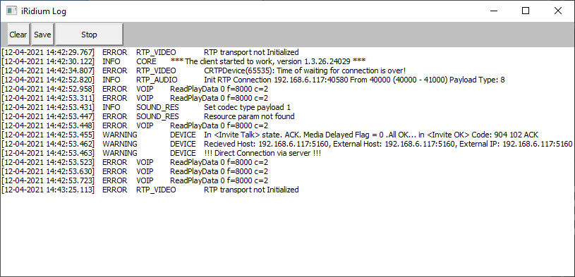 When I press the call button on the Doorbird, the call shows up in the emulator. As soon as I press "answer" the log shows these lines (as long as the call is active, the 'error' lines keep flowing in):